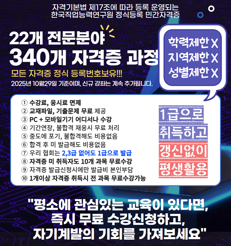 합격자 중 자격증 발급희망자는 자격증 발급신청 및 협회 발급비 9만원 납부